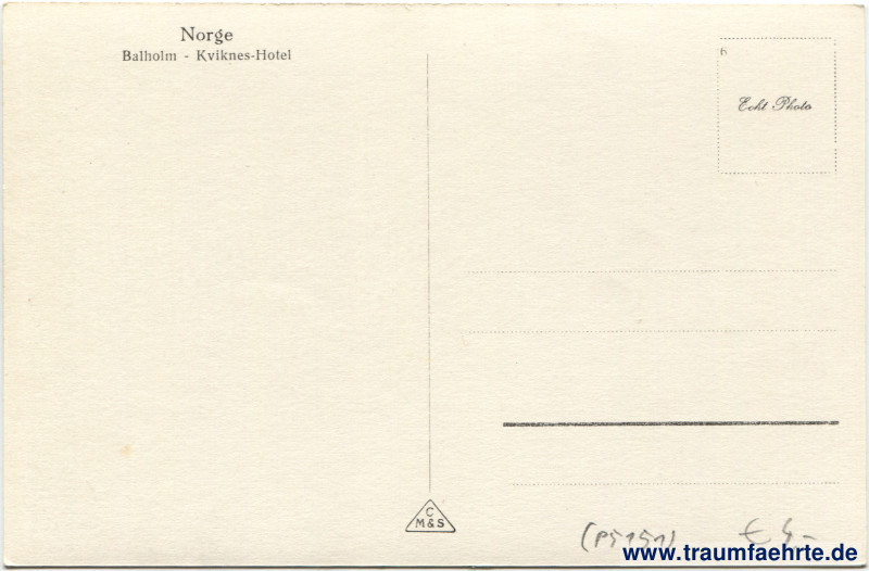 Inscription back: Norge, Balholm - Kviknes-Hotel, C M & S, 6, Echt Photo