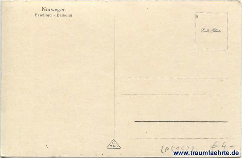 Beschriftung hinten: Norwegen, Essefjord - Balholm, C M & S, 6, Echt Photo
