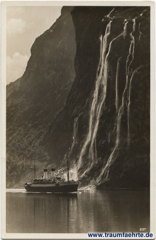 Schlagworte: Fjorde, Atlantik, Dampfschiffe, Schiffe, Wasserfälle, Felsen, Wald