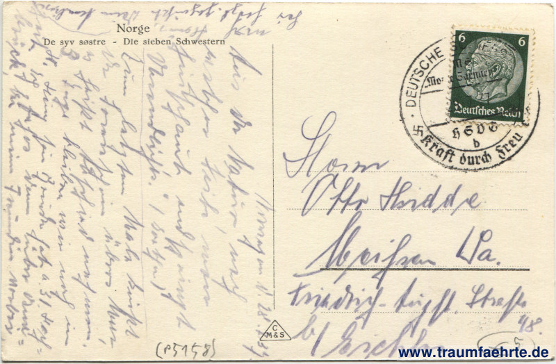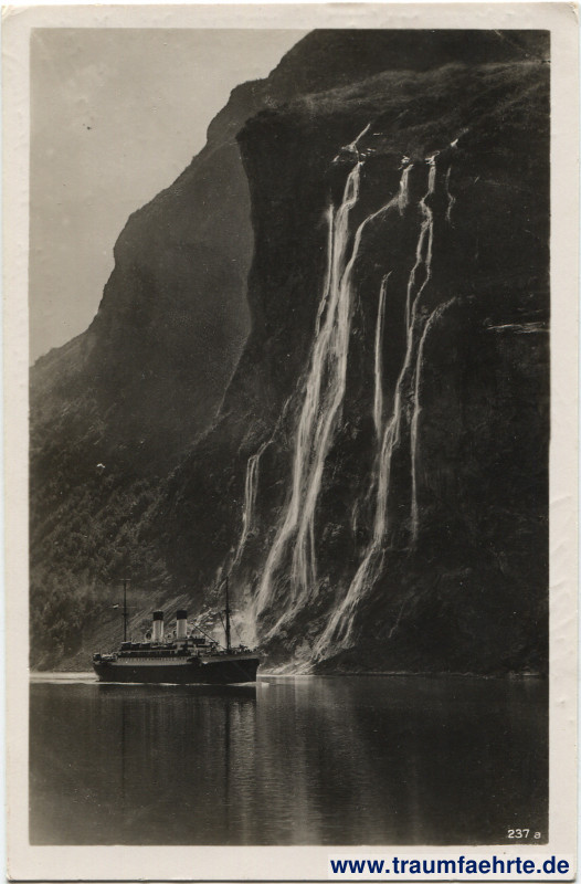 Schlagworte: Schiffspost, Dampfschiffe, Schiffe, Fjorde, Wasserfälle, Berge, Felsen, Wald, Kraft durch Freude, Nationalsozialismus