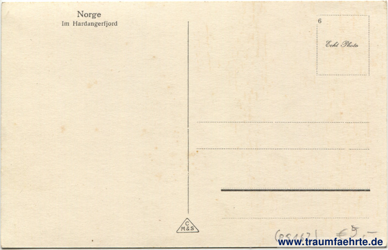 Beschriftung hinten: Norge, Im Hardangerfjord, C M & S, 6, Echt Photo