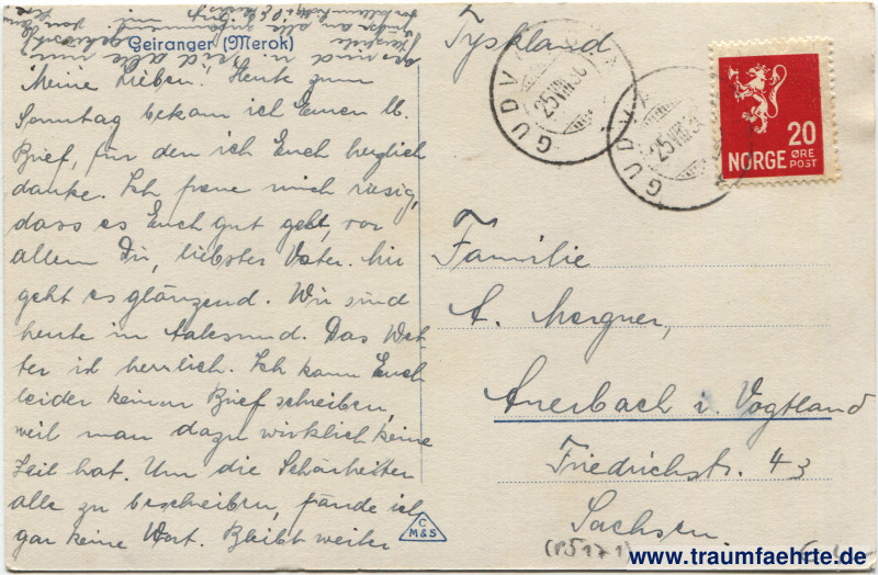 Beschriftung hinten: Geiranger (Merok), C M & S