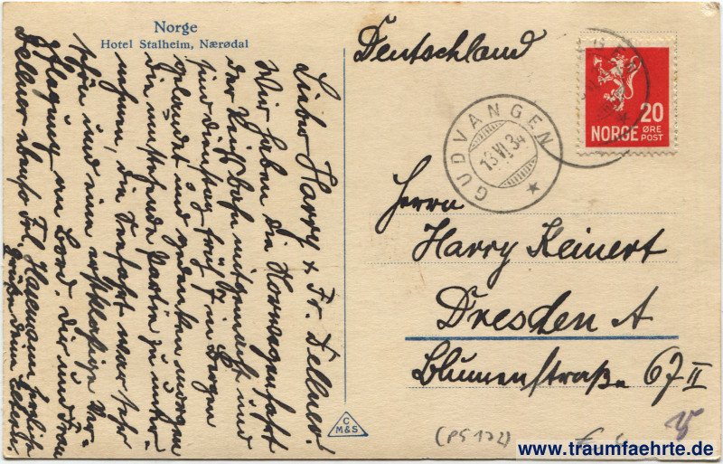 Postmark(s): 2x Gudvangen, *, 13 VI 34