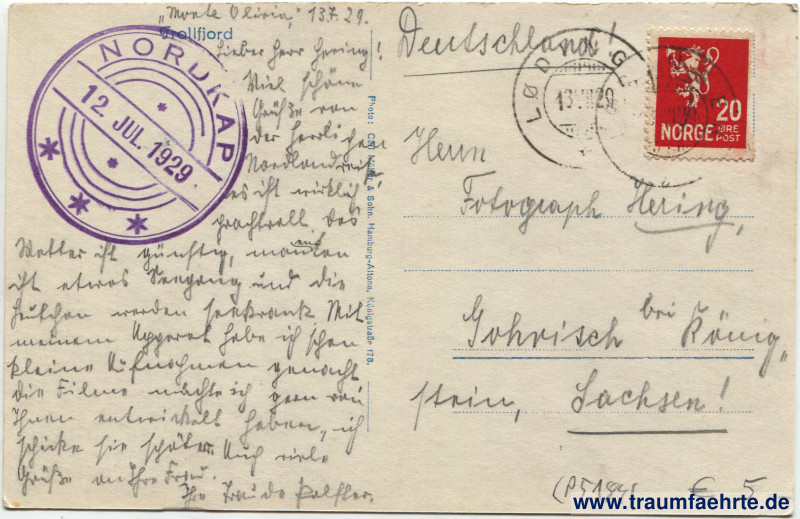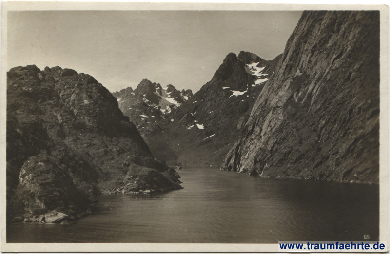 – Details – Jahr: ca. 1925 Status: gelaufen 1929 Beschriftung vorne: 65 Beschriftung hinten: Trolljord, Photo: Carl Müller & Sohn. Hamburg-Altona, Königstraße 178. Stempel: Nordkap, ***, 12 Jul. 1929; 2x Lødingen, *, 13 VII 29 Hinweis: