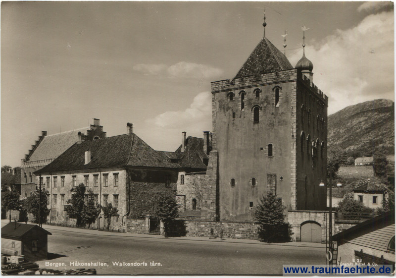 Inscription front: Bergen. Håkonshallen, Walkendorfs tårn. S 23 Enerett Millet & Co.