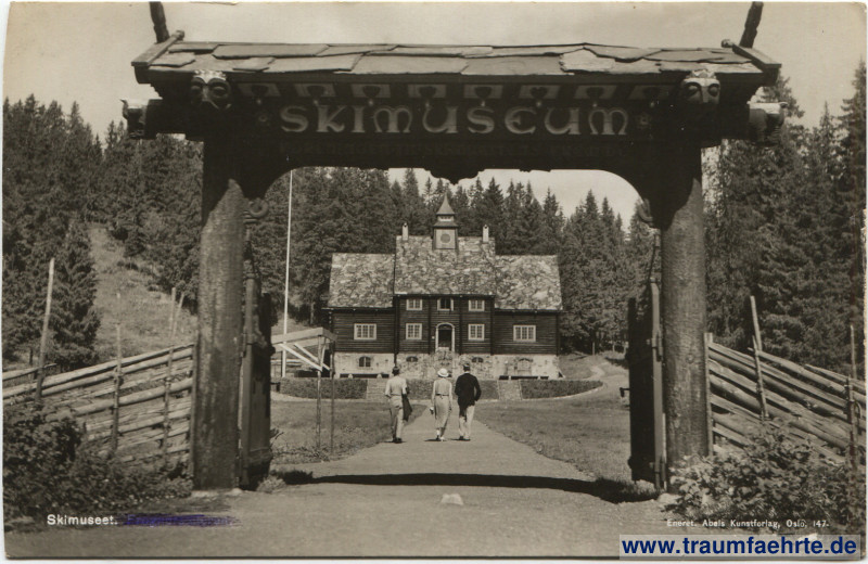 Inscription front: Skimusset. Enerett. Abels Kunstforlag, Oslo, 147. Skimuseum