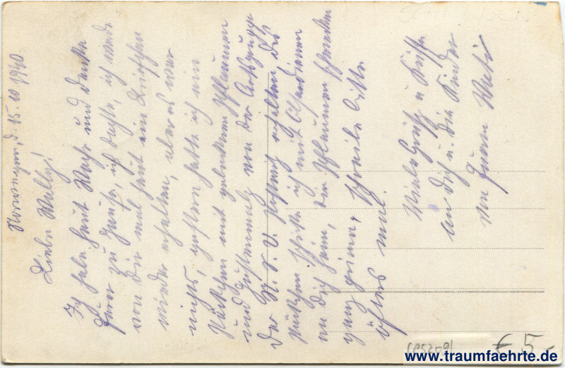 Condition: corners slightly bumped, card minimally curved, written on back side despite not used postally (dated: 15.10.1940)