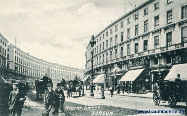 – Details – Year: ca. 1900 Postal state: postally unused Inscription front: Regent Street, London. Inscription back: Post Card, The address only to be written on this side. For Inland Postage only, This space may be used for Communication, Printed at our works in Saxony, No 532 Postmark(s): none Please note: