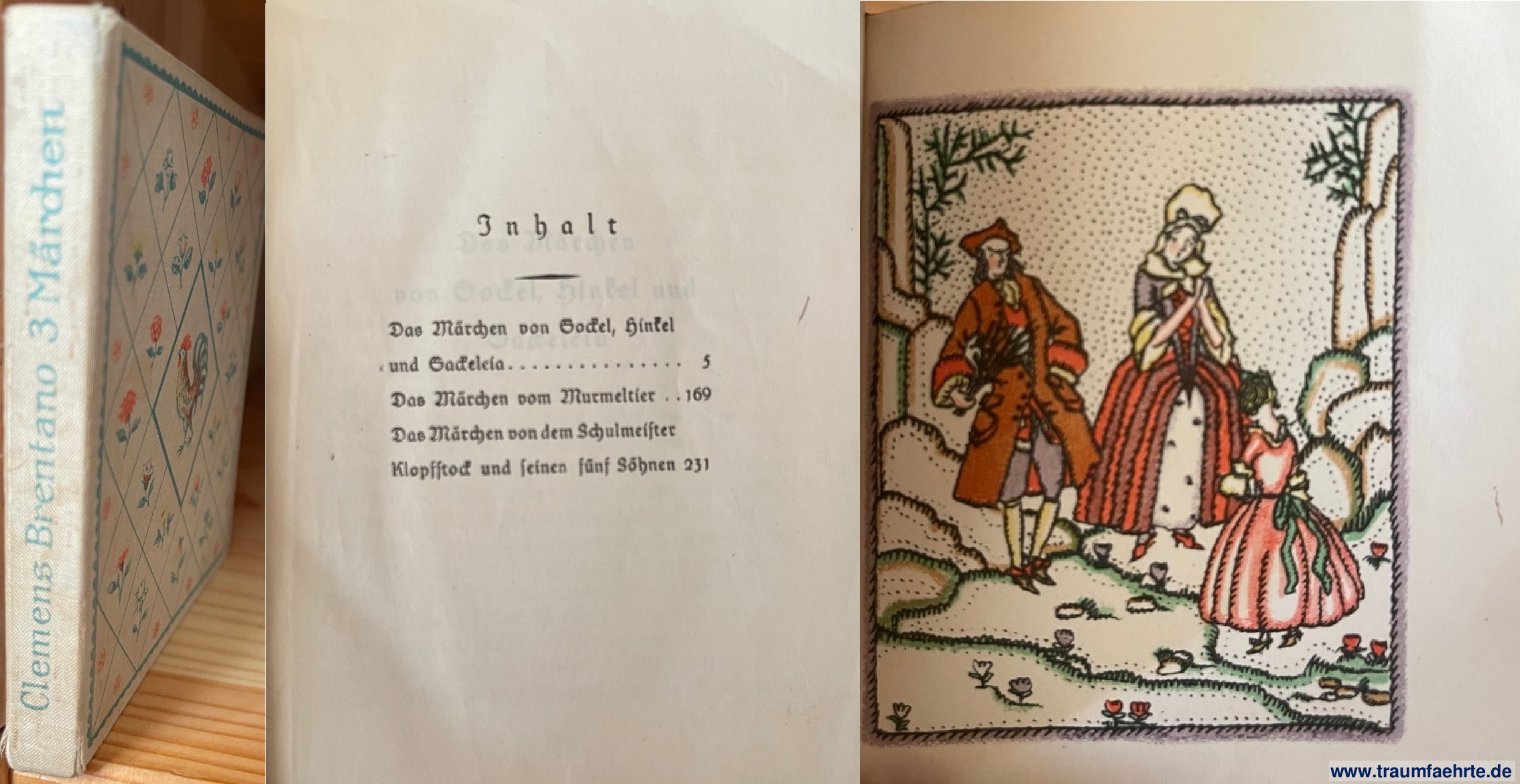 Alte Bücher etc. > Belletristik > Märchen & SagenBrentano, Clemens: Drei Märchen. [ Permalink ]>>> Artikel-Nr: 6373 <<< Wien, Schroll ca. 1925, 16 Original-Lithographien v. F. Löw, 319 S., farb. ill. OLn., 8,5x10,5 cm Zustand: berieben Preis: 38,00 €