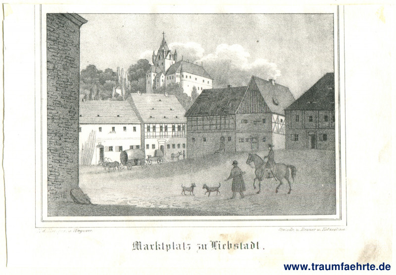 Beschriftung: Marktplatz zu Liebstadt. N. d. Nat. gez. v. Wegener. Steindr. v. Renner u. Ketzschau.