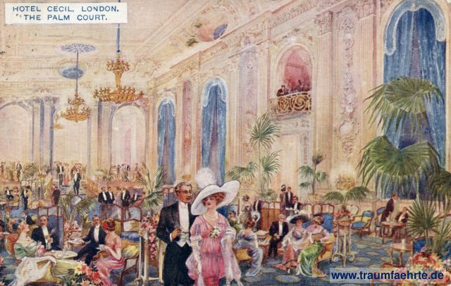 – Details – Jahr: ca. 1910 Status: gelaufen ohne Briefmarke, 1916 Beschriftung vorne: Hotel Cecil, London. The Palm Court. Beschriftung hinten: Post Card, Carte Postale, Postkarte, (For Address Only) Stempel: Posen W, 3, 24.6.16, 1-2 N; --- Hinweis: